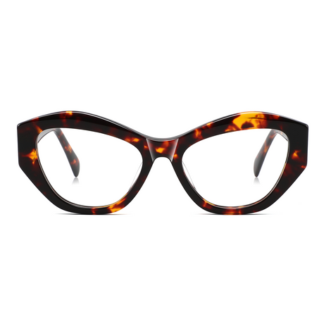 Chic cat-eye frame with a geometric tortoise shell pattern, offering a stylish and elegant look. Lightweight and comfortable, perfect for everyday wear with a fashionable touch.