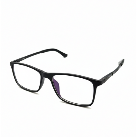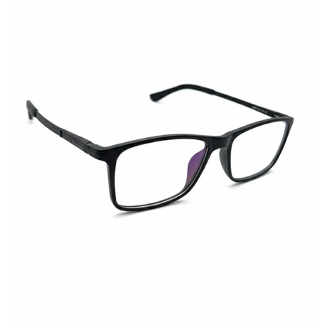 Sleek rectangular frame with a lightweight matte finish. Clean modern styling, durable structure, and prescription-ready for daily wear.