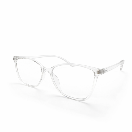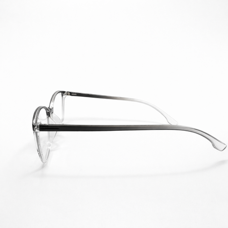 Modern transparent grey frame with a soft gradient finish and a clean rectangular silhouette. Lightweight, minimal, and prescription-ready for everyday wear.