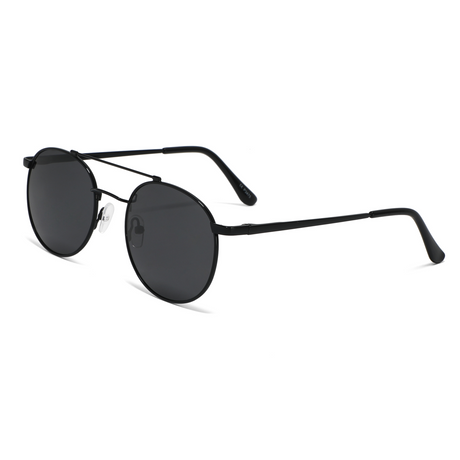 These round metal sunglasses feature a sleek matte black frame paired with TAC polarised lenses for sharp clarity and reduced glare. Designed with durable metal hinges and adjustable nose pads, they offer lightweight comfort with premium everyday performance.